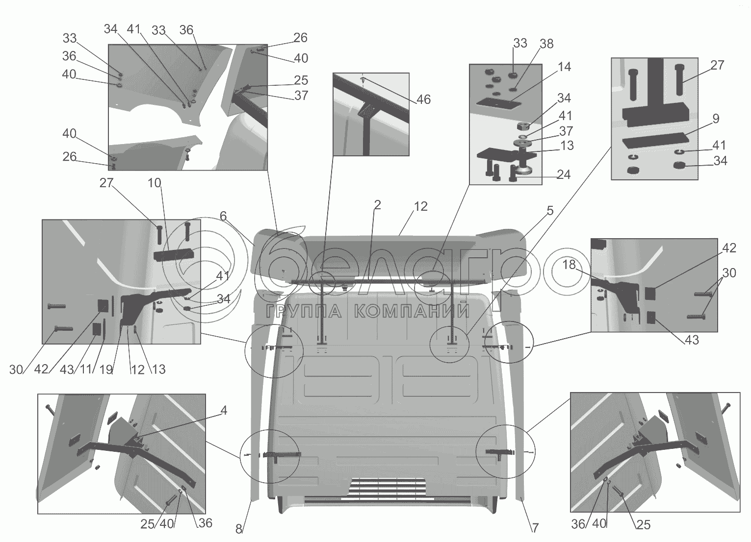 Каталог запасных частей к технике: МАЗ-5440B9, 6430B9. Установка обтекателя 6430-8000014-010