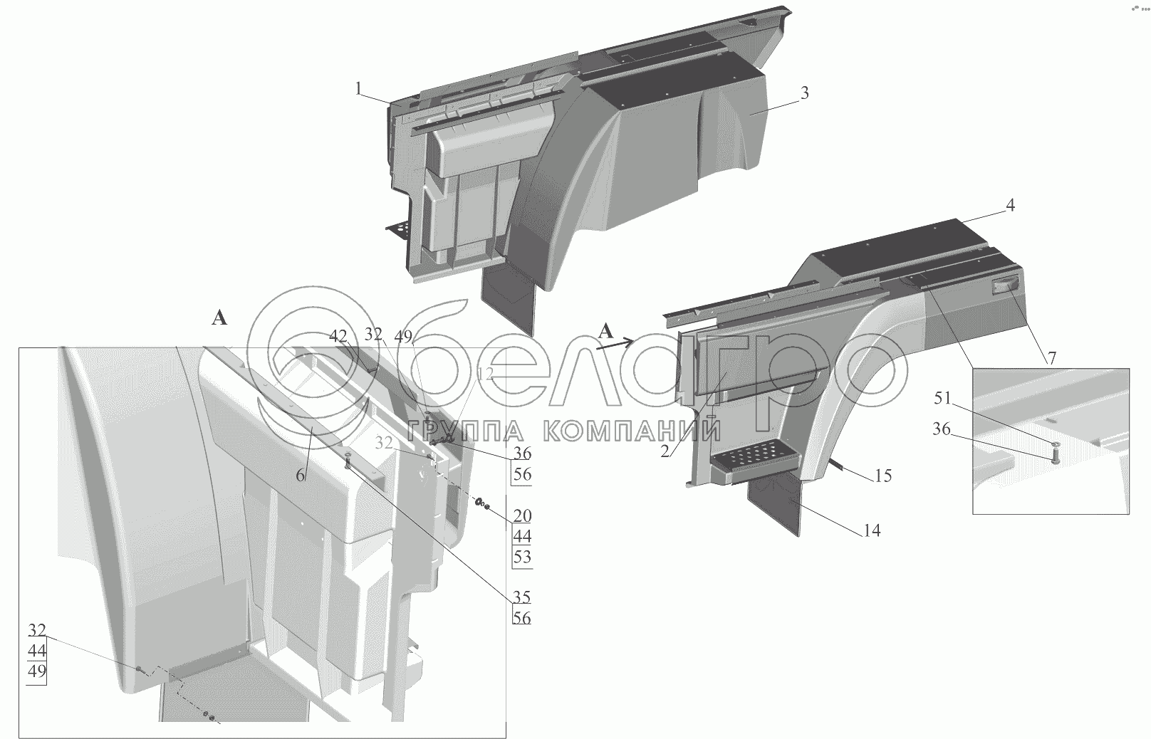 Каталог запасных частей к технике: МАЗ-5440B9, 6430B9. Установка оперения 6430А9-8400020-010