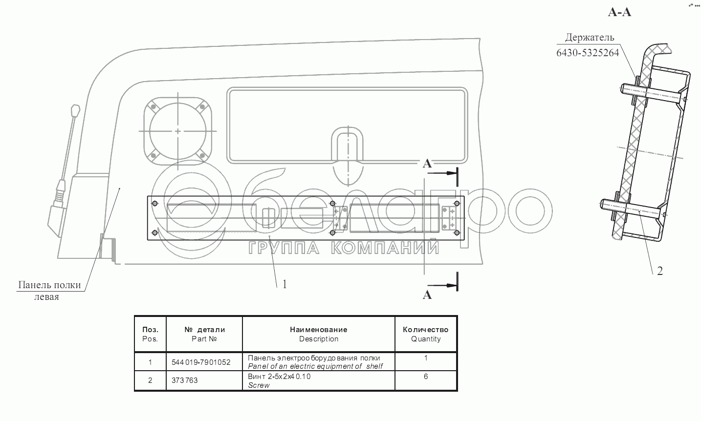 Каталог запасных частей к технике: МАЗ-5440B9, 6430B9. Установка панели на полке 544019-7901080