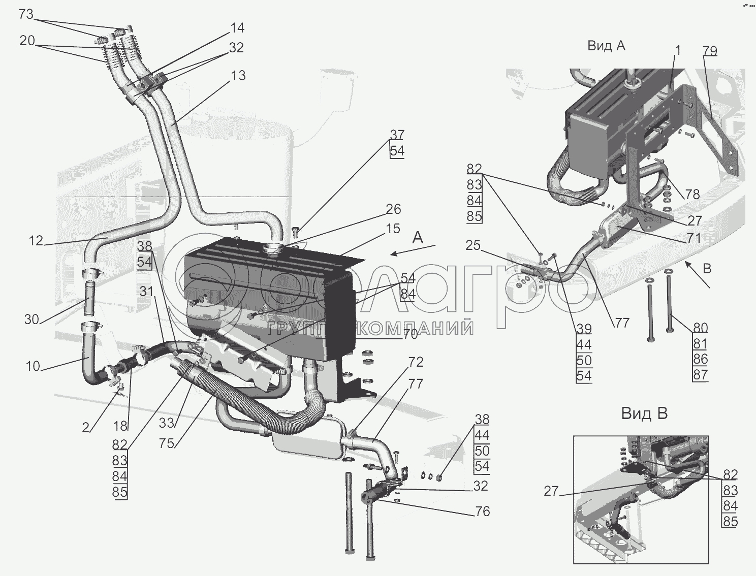Каталог запасных частей к технике: МАЗ-5440B9, 6430B9. Установка подогревателя 555035-1015001-010
