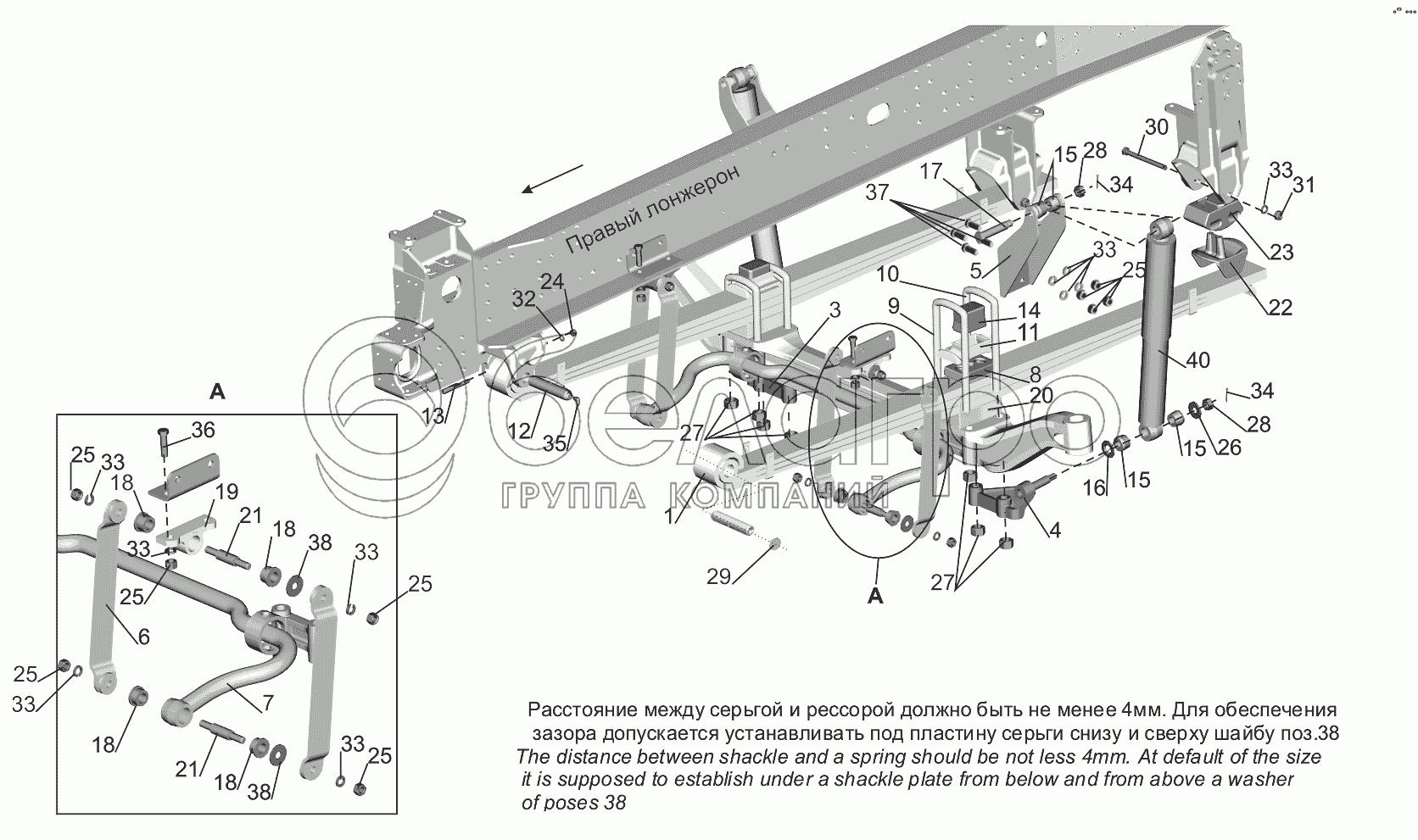 Каталог запасных частей к технике: МАЗ-5440B9, 6430B9. Установка подвески передней 650108-2900001-030