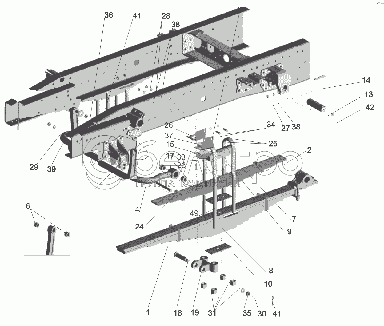 Каталог запасных частей к технике: МАЗ-5440B9, 6430B9. Установка подвески задней 5440-2900002-013