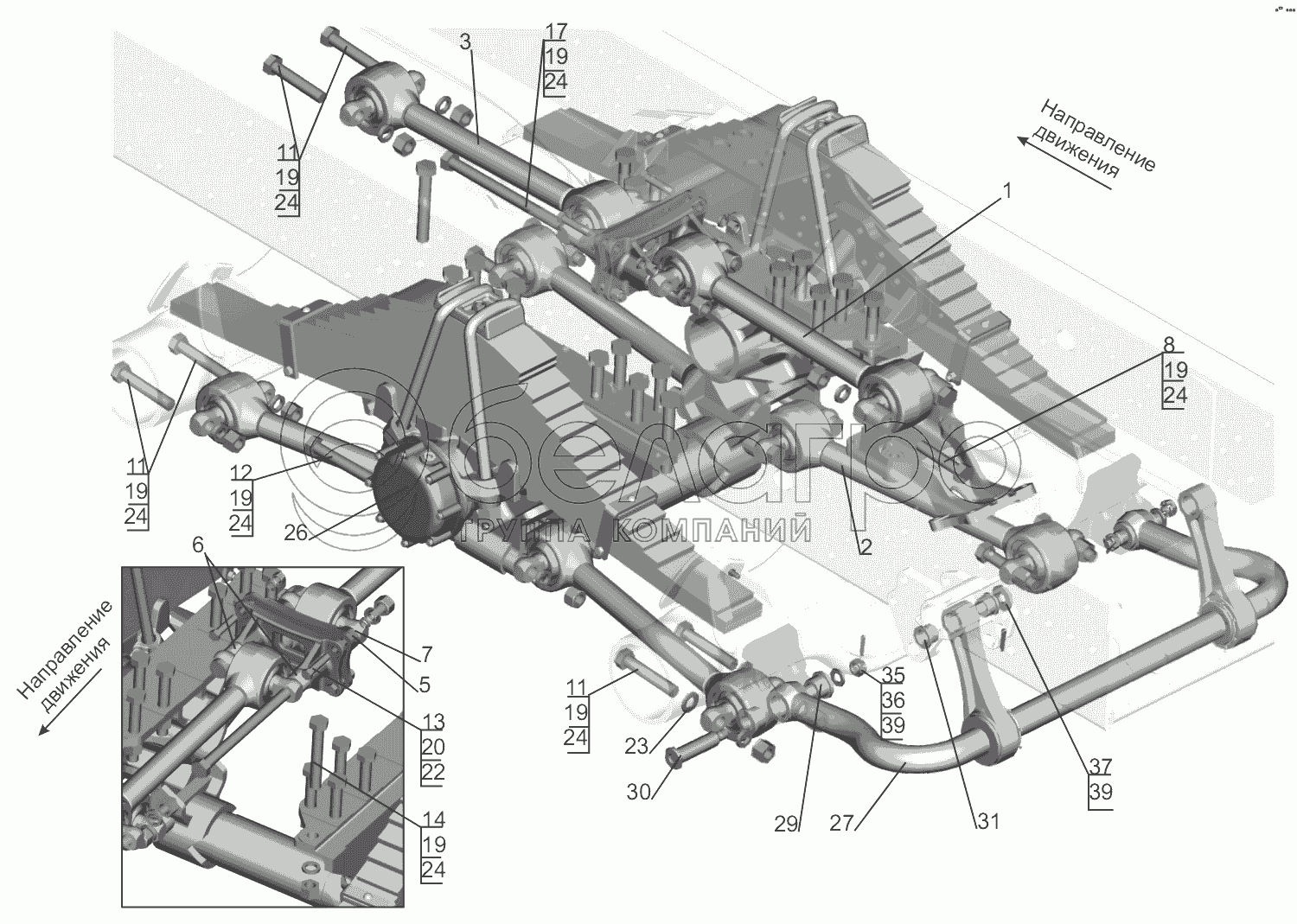Каталог запасных частей к технике: МАЗ-5440B9, 6430B9. Установка подвески задней 6430A9-2900002-000