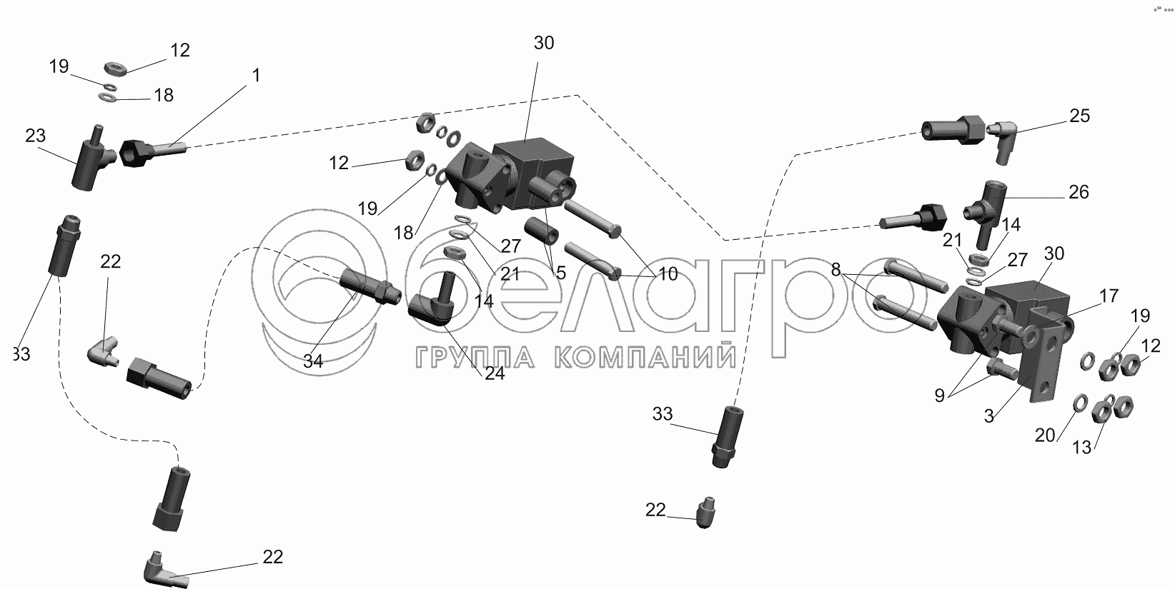 Каталог запасных частей к технике: МАЗ-5440B9, 6430B9. Установка привода управления блокировки 6430-2500024