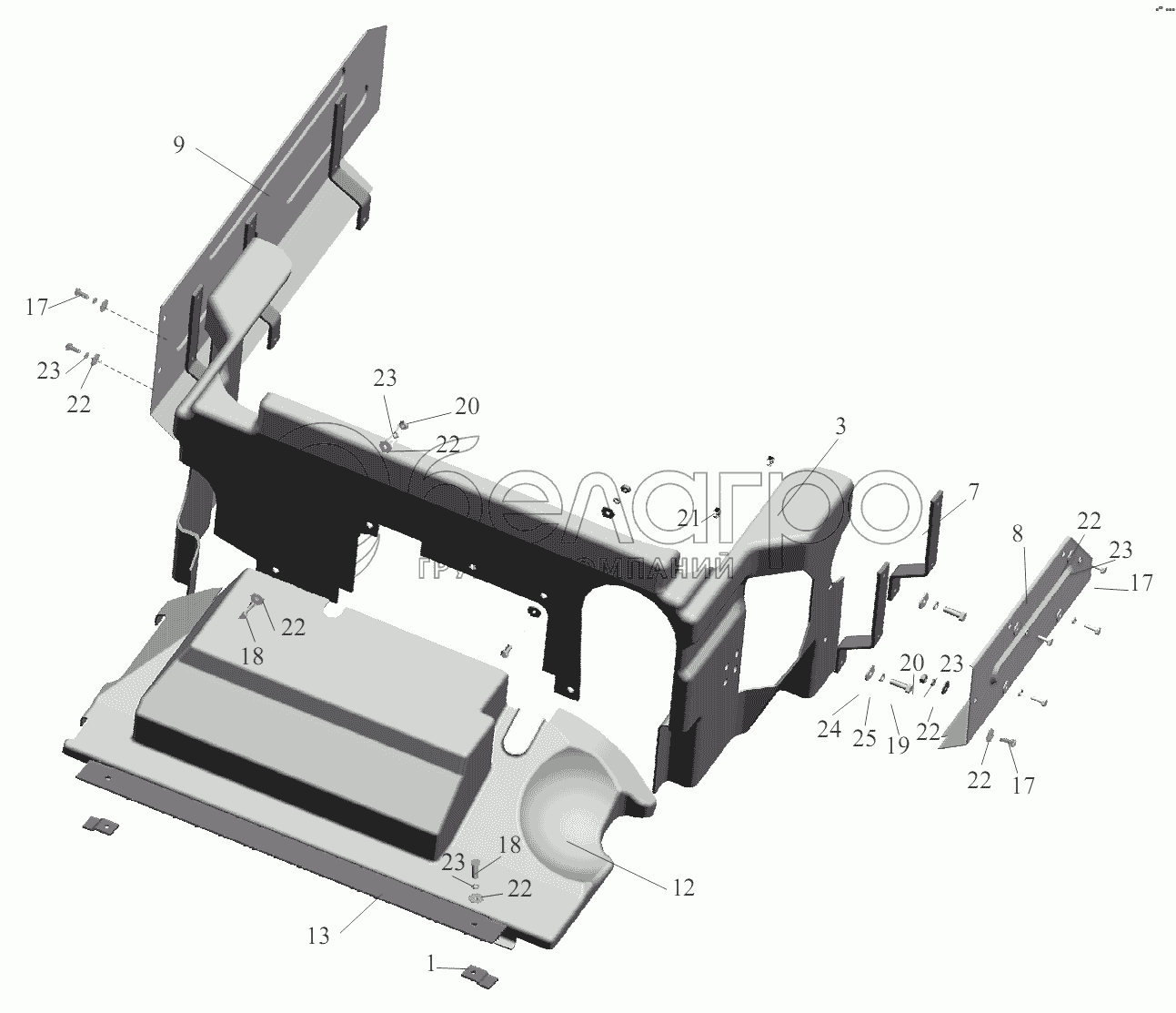 Каталог запасных частей к технике: МАЗ-5440B9, 6430B9. Установка шумоизоляционных экранов 5440A9-1061003-005