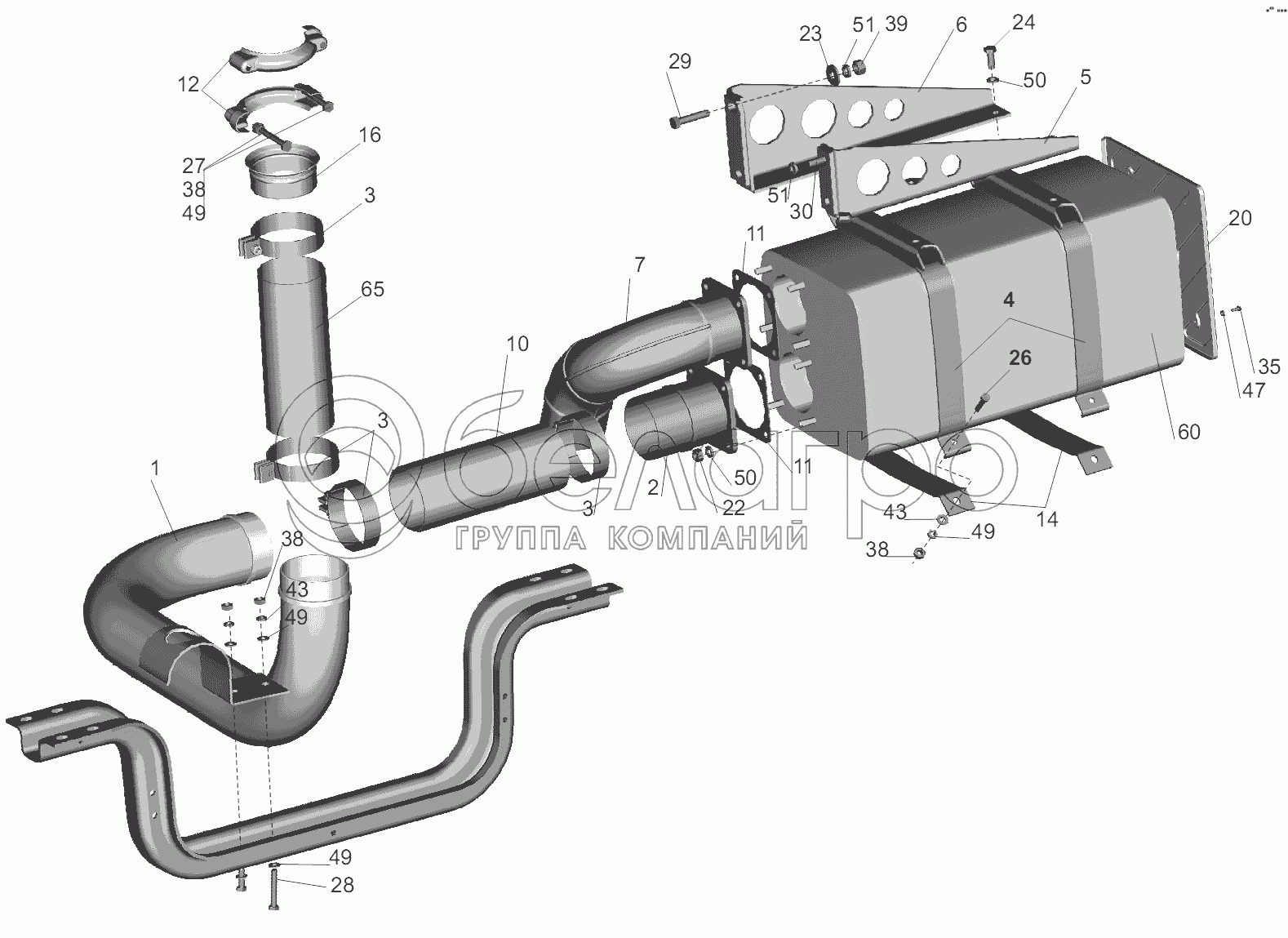 Каталог запасных частей к технике: МАЗ-5440B9, 6430B9. Установка системы выпуска газов 6430B9-1200001