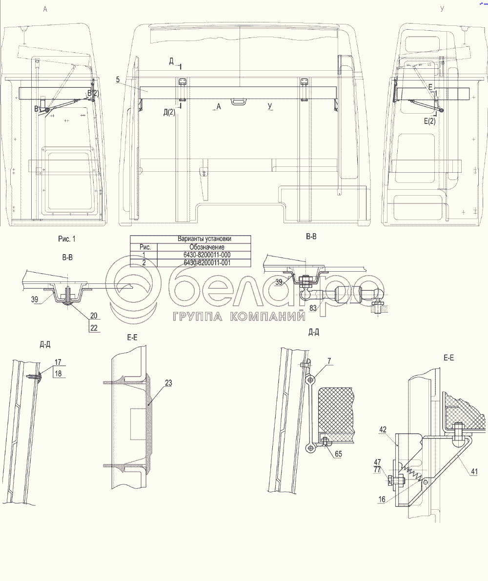 Каталог запасных частей к технике: МАЗ-5440B9, 6430B9. Установка спального места верхнего