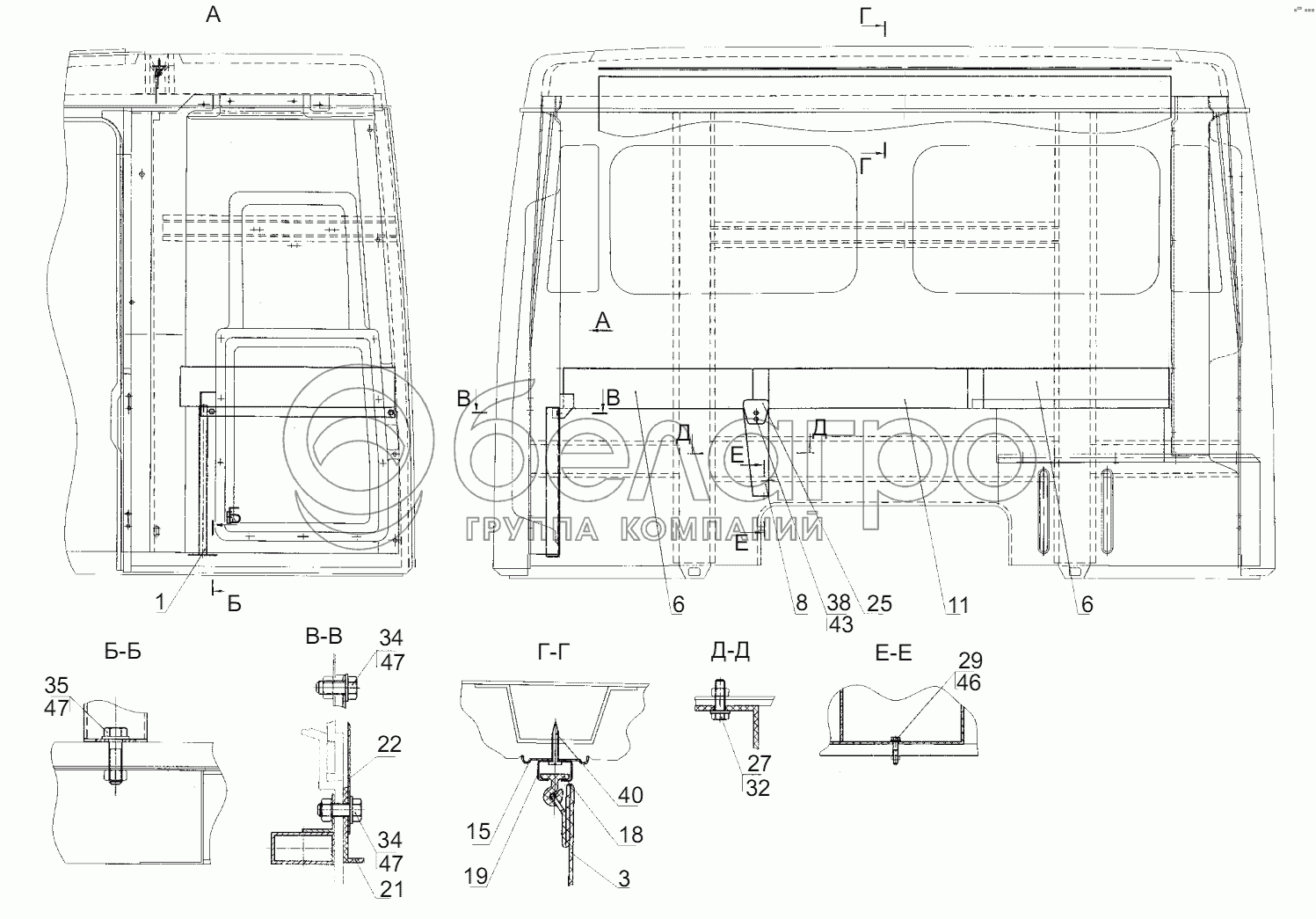 Каталог запасных частей к технике: МАЗ-5440B9, 6430B9. Установка спальных мест 5440-8200010