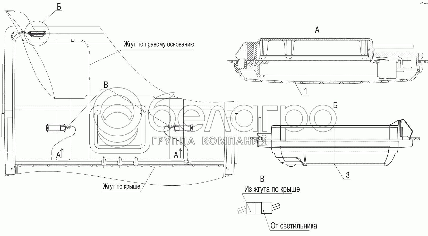 Каталог запасных частей к технике: МАЗ-5440B9, 6430B9. Установка светильников в кабине 544008-3700136