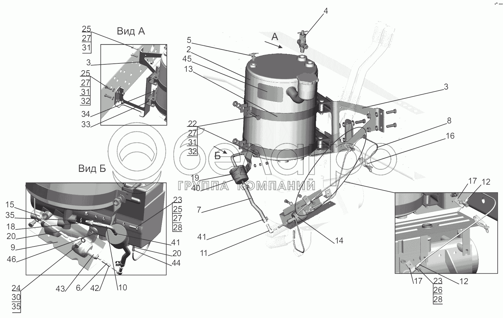 Каталог запасных частей к технике: МАЗ-5440B9, 6430B9. Установка топливопроводов подогревателя 6501B5-1015004