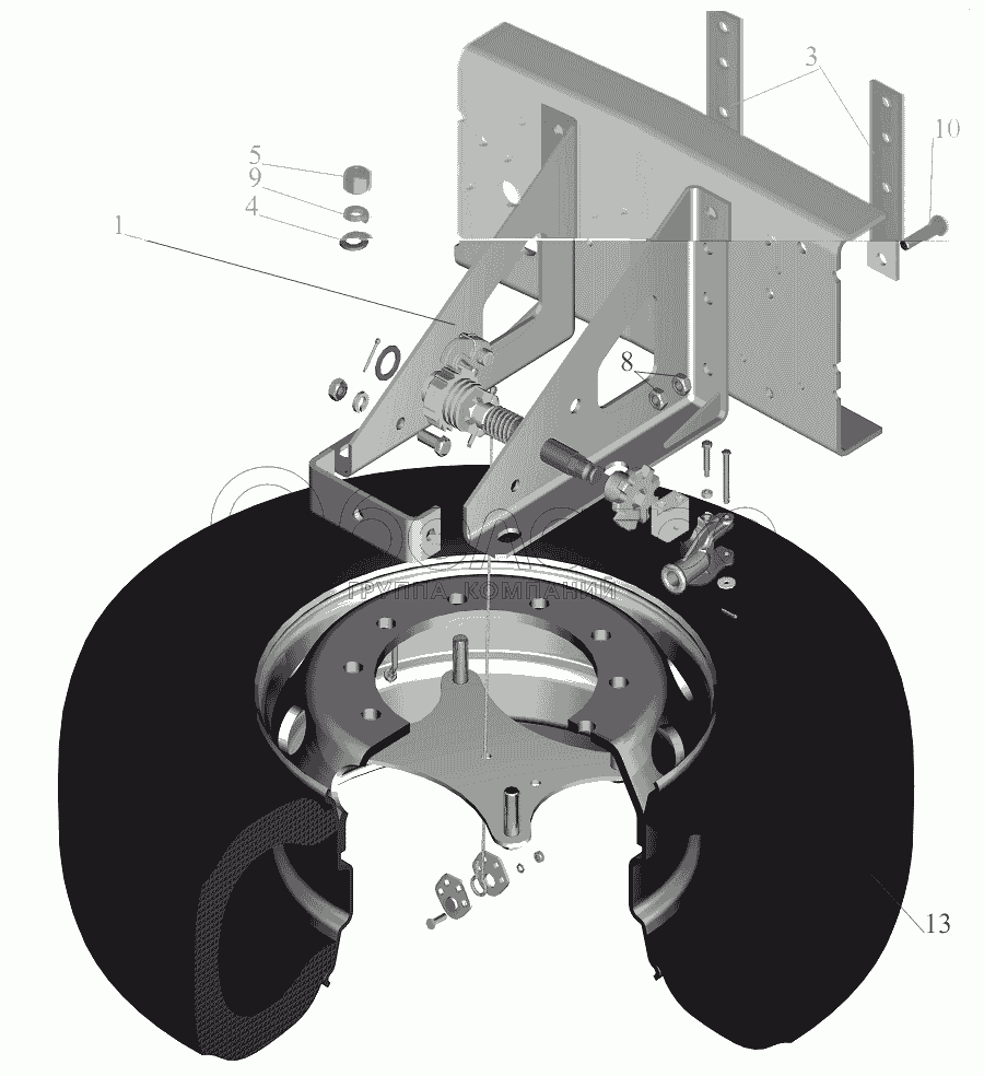 Каталог запасных частей к технике: МАЗ-5440B9, 6430B9. Установка запасного колеса