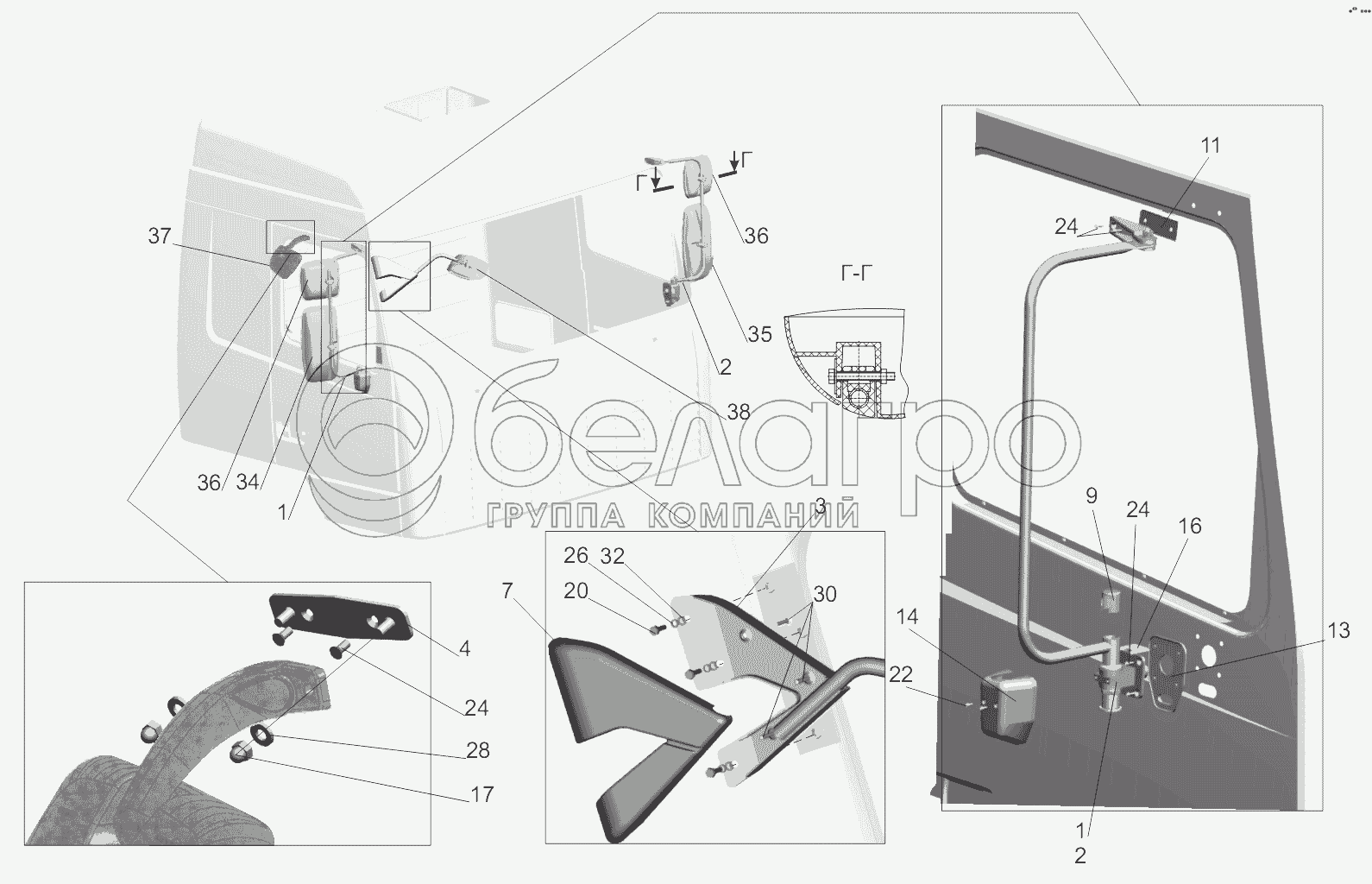 Каталог запасных частей к технике: МАЗ-5440B9, 6430B9. Установка зеркал 6430-8200005-010