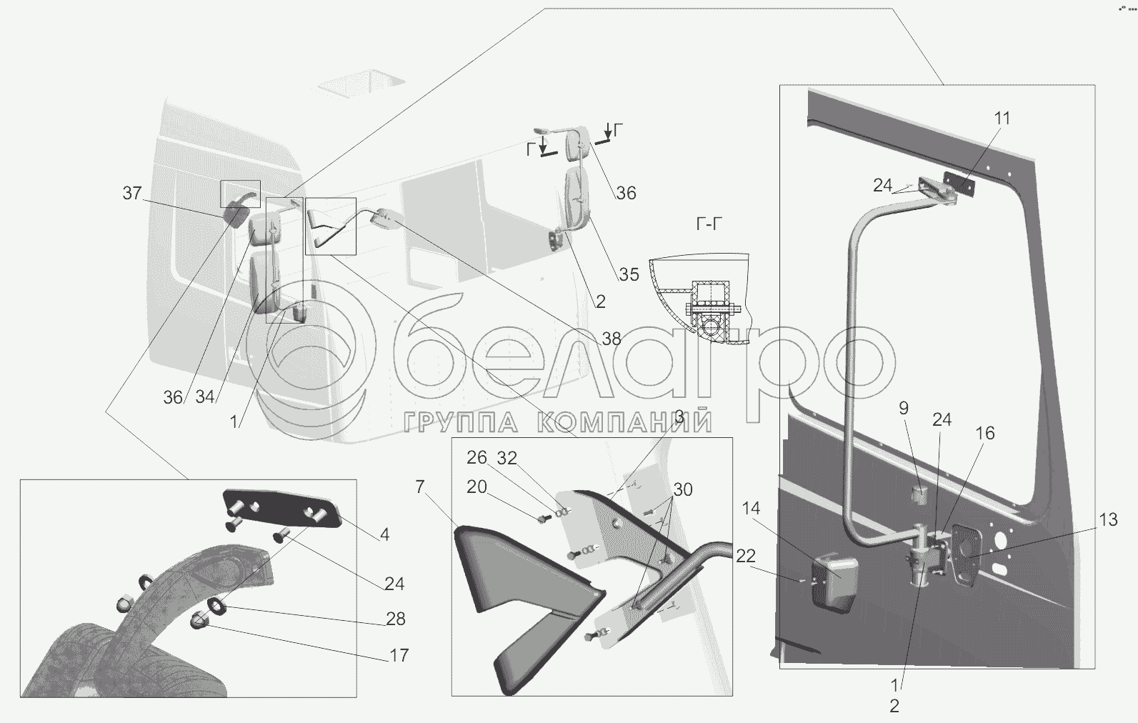 Каталог запасных частей к технике: МАЗ-5440B9, 6430B9. Установка зеркал 6430-8200005-020