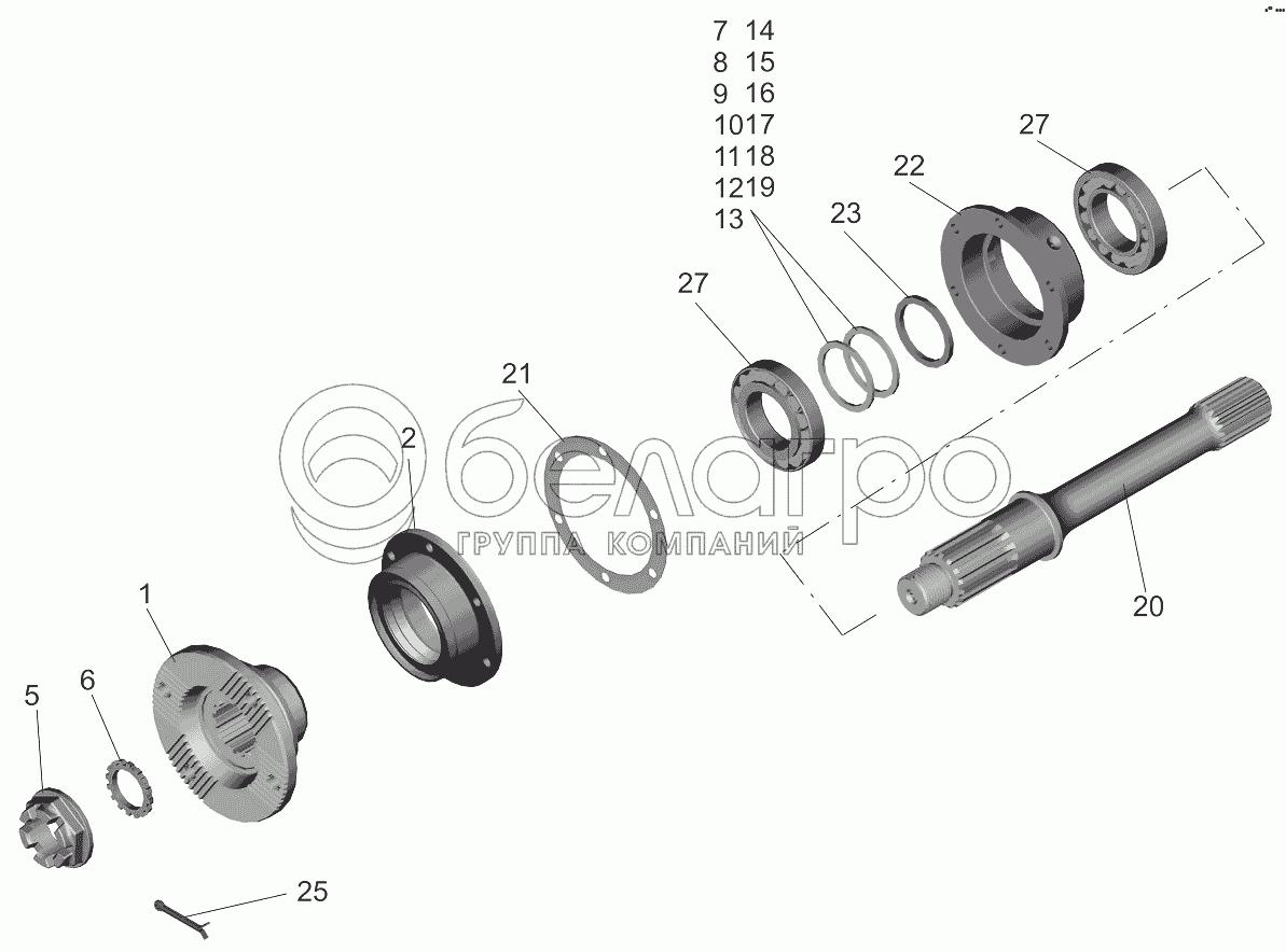 Каталог запасных частей к технике: МАЗ-5440B9, 6430B9. Вал задний