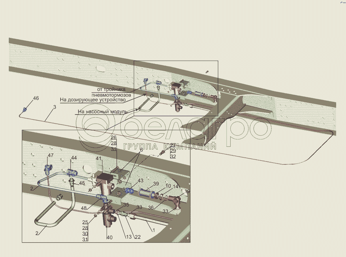 Каталог запасных частей к технике: МАЗ-5440E9. Крепление аппаратов подготовки воздуха 5440Е9-1401010