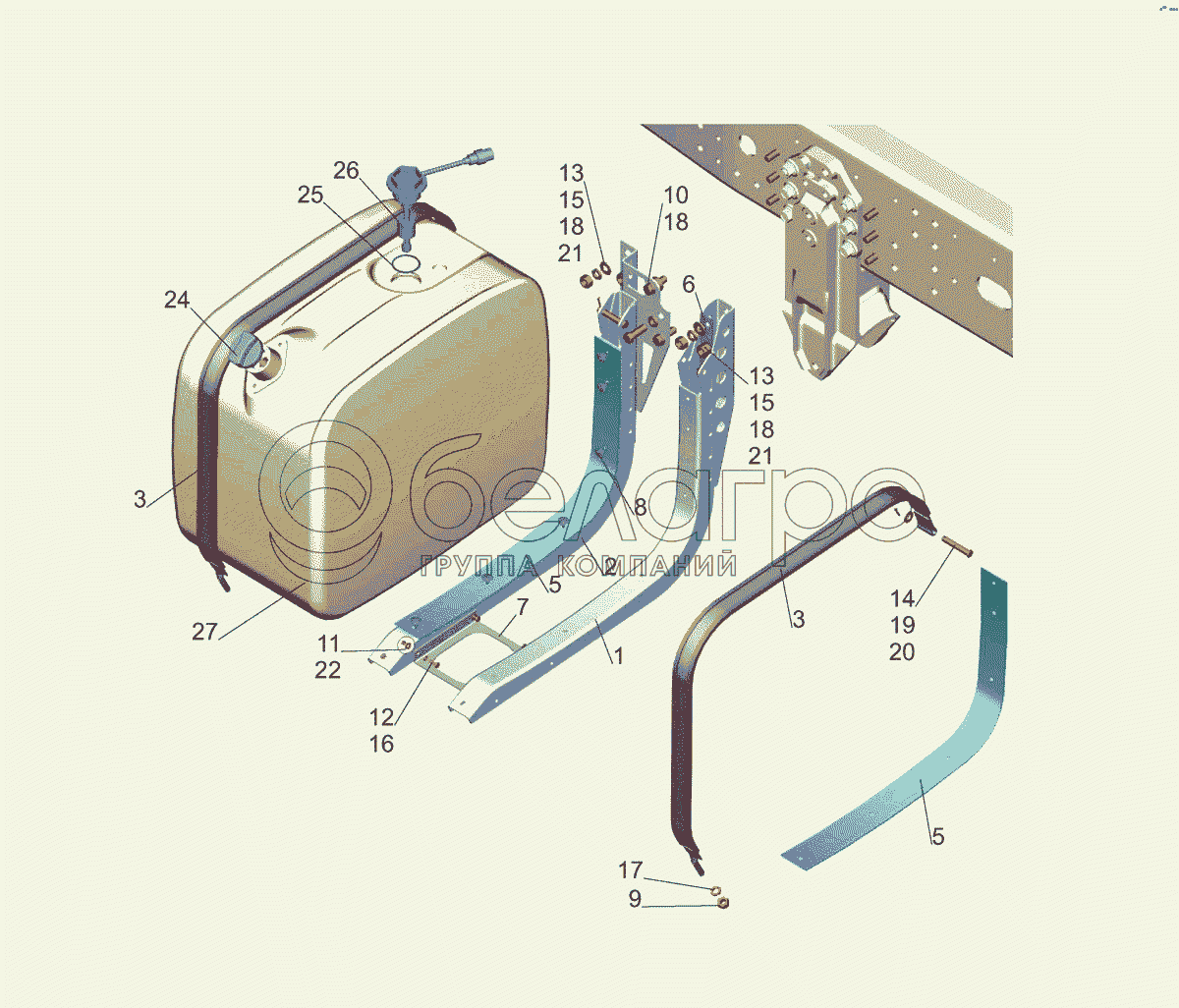 Каталог запасных частей к технике: МАЗ-5440E9. Крепление бака 544019-1401002