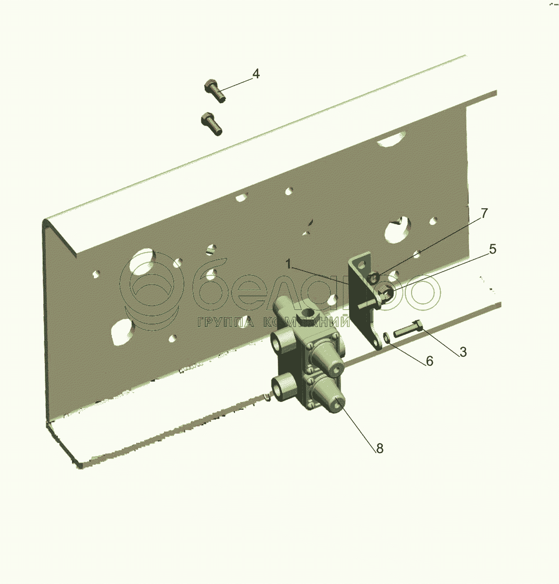 Каталог запасных частей к технике: МАЗ-5440E9. Крепление четырехконтурного клапана 544019-3515002