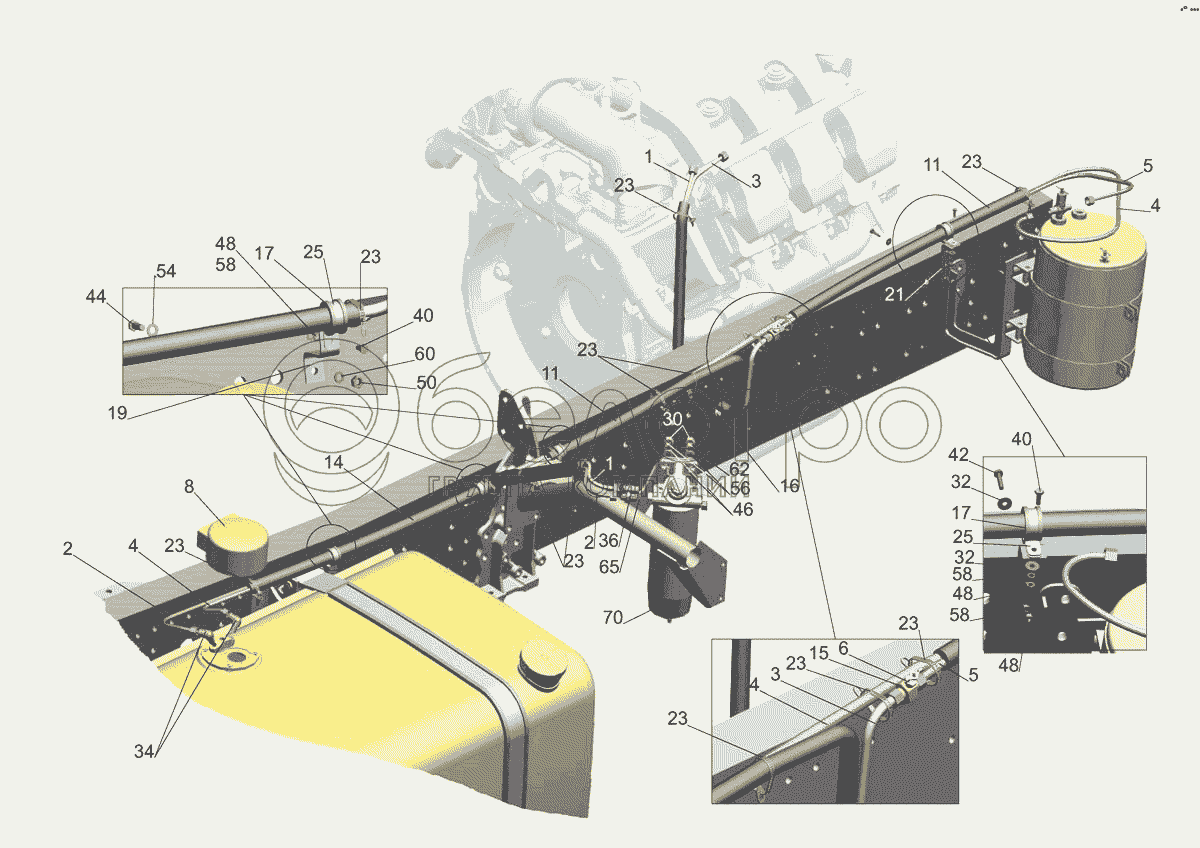 Каталог запасных частей к технике: МАЗ-5440E9. Крепление топливопроводов 544019-1104002