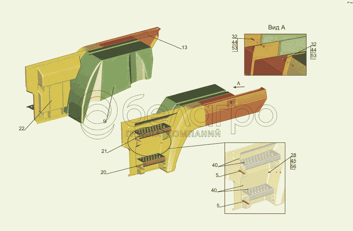 Каталог запасных частей к технике: МАЗ-5440E9. Оперение 6312-8400010-010