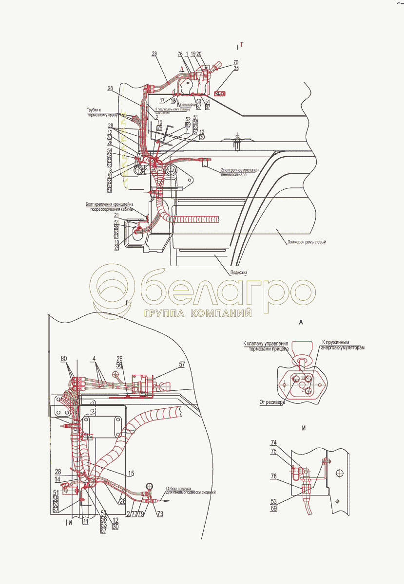 Каталог запасных частей к технике: МАЗ-5440E9. Привод стояночного тормоза 5440Е9-3537006