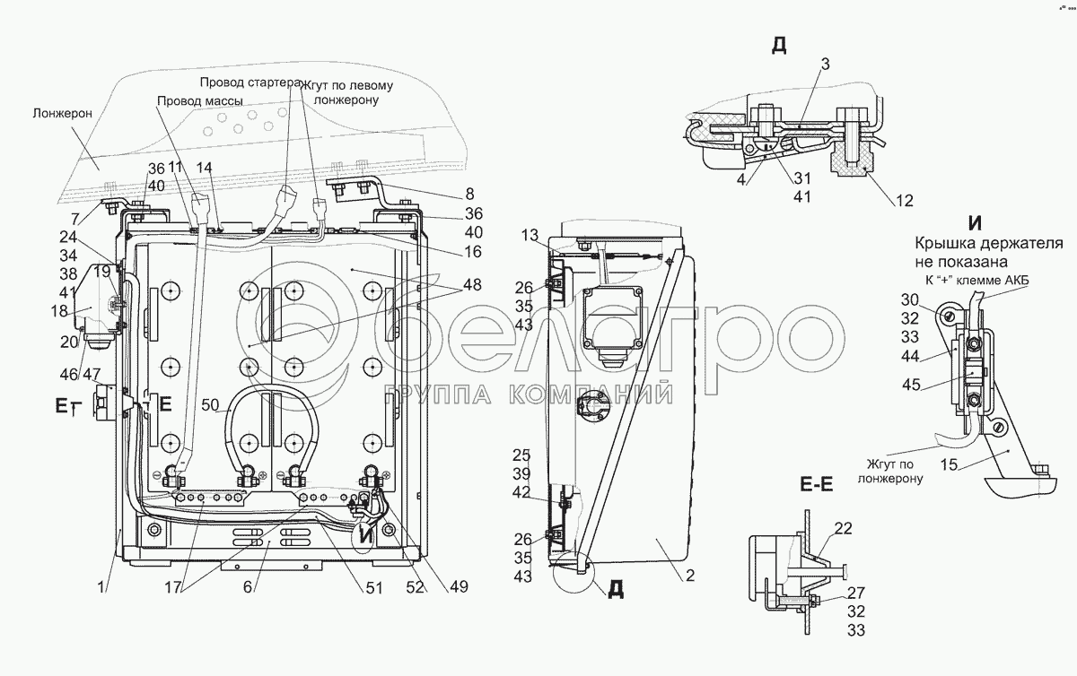 Каталог запасных частей к технике: МАЗ-5440E9. Установка аккумуляторных батарей 650119-3700008