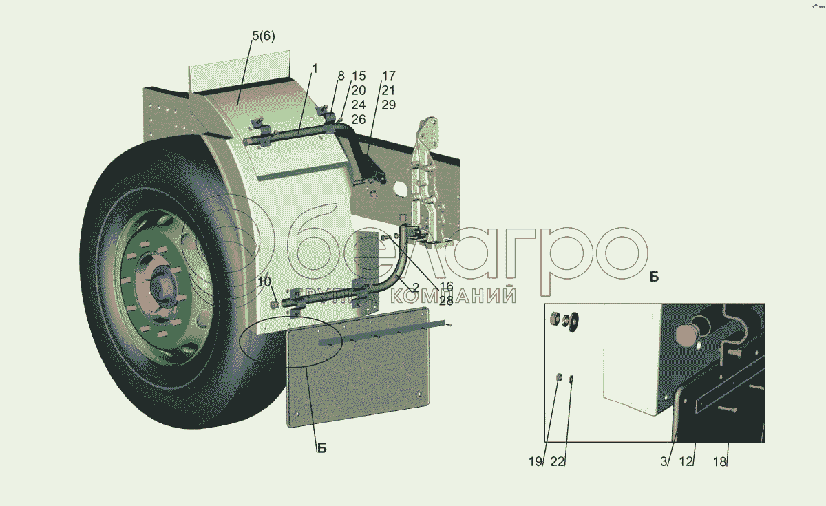 Каталог запасных частей к технике: МАЗ-5440E9. Установка брызговиков передних колес 643019-8400030