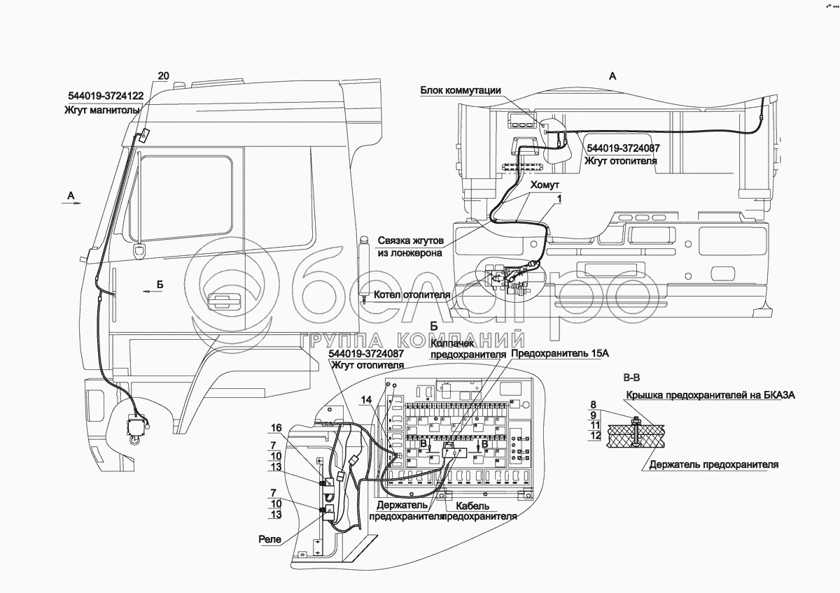 Каталог запасных частей к технике: МАЗ-5440E9. Установка электрооборудования подогревателя 544019-3700085