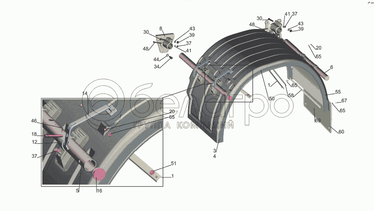 Каталог запасных частей к технике: МАЗ-5440E9. Установка крыльев 544019-8500048-060