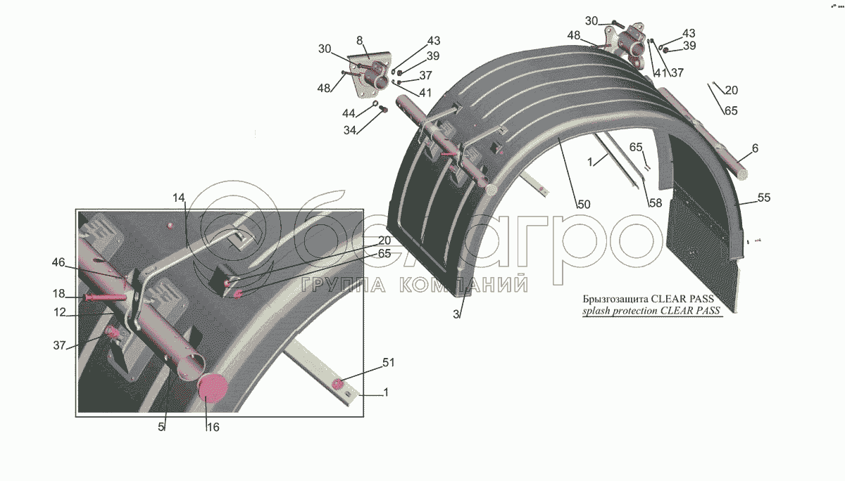 Каталог запасных частей к технике: МАЗ-5440E9. Установка крыльев 544019-8500048-070