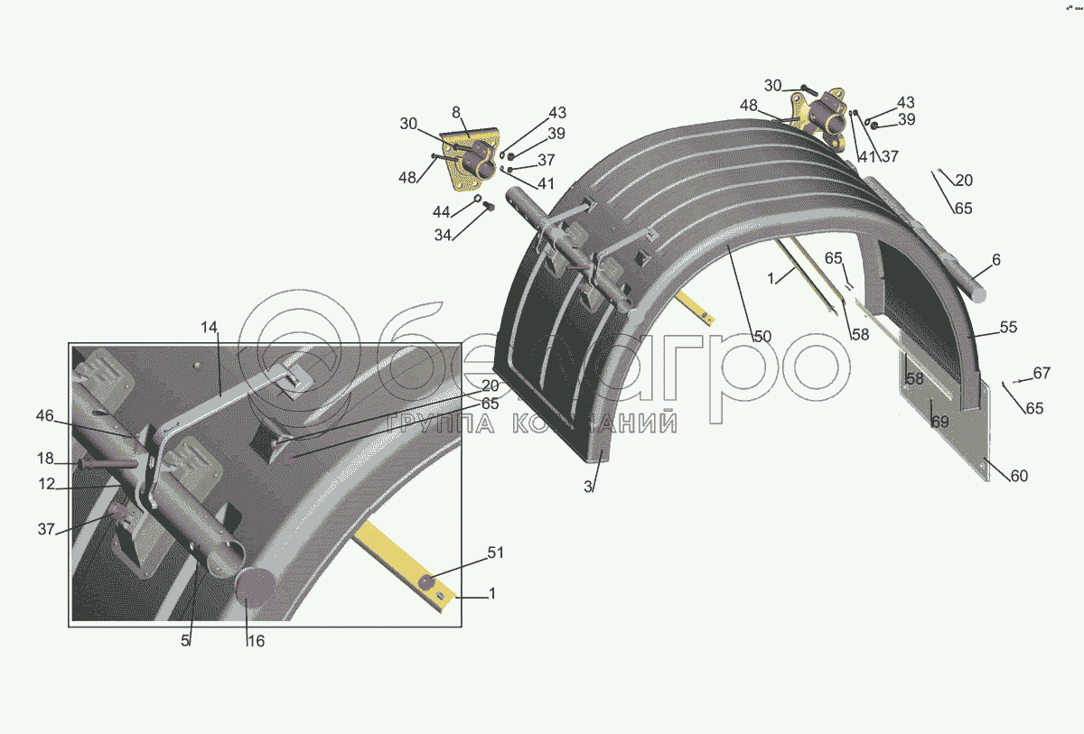 Каталог запасных частей к технике: МАЗ-5440E9. Установка крыльев 544019-8500048-075