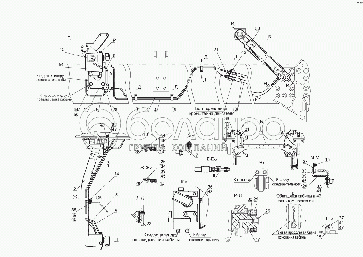 Каталог запасных частей к технике: МАЗ-5440E9. Установка механизма подъема кабины 544019-5000040-010