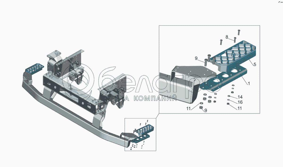 Каталог запасных частей к технике: МАЗ-5440E9. Установка нижней подножки 643019-8400016-010