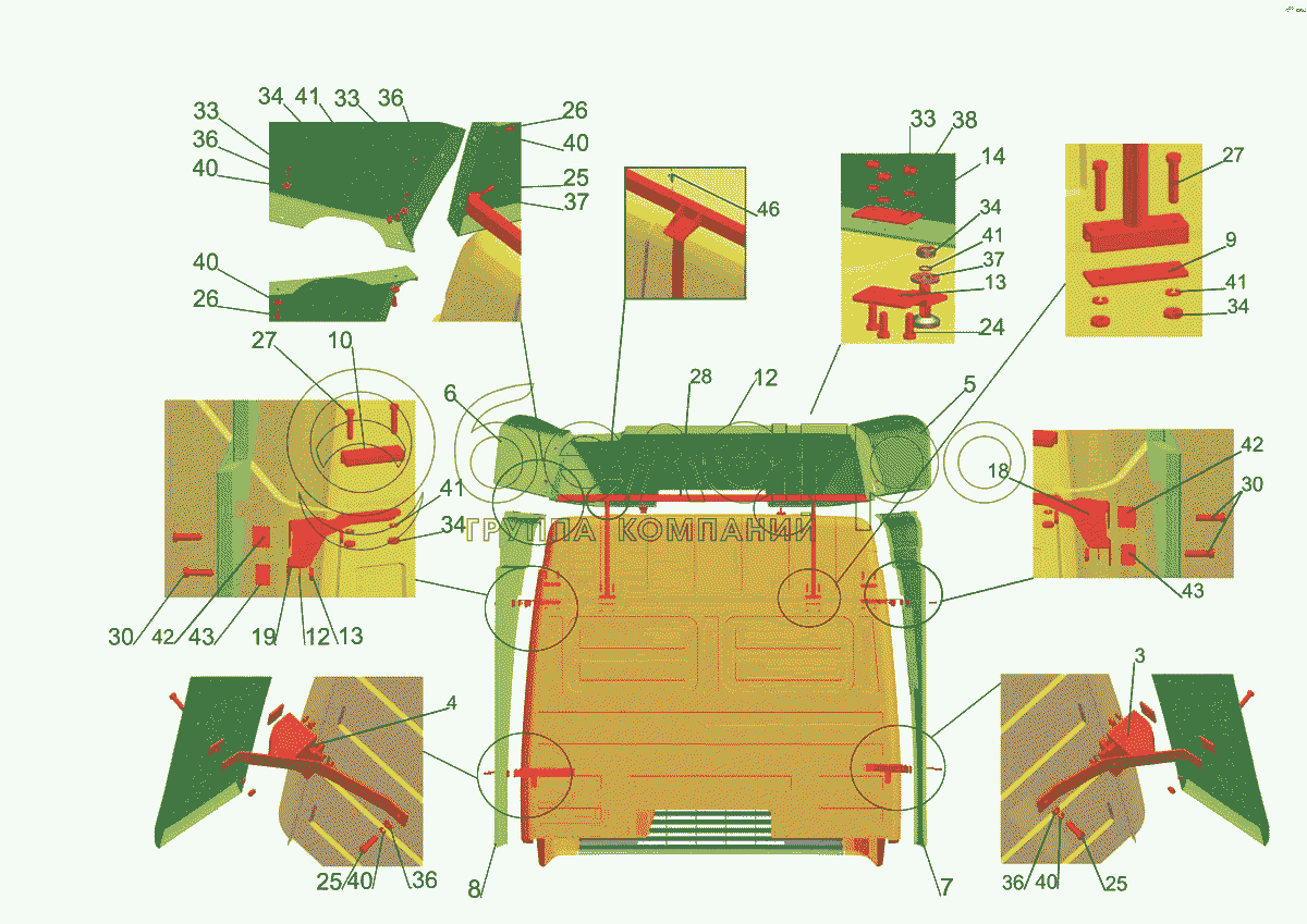 Каталог запасных частей к технике: МАЗ-5440E9. Установка обтекателей 6430-8000014-010