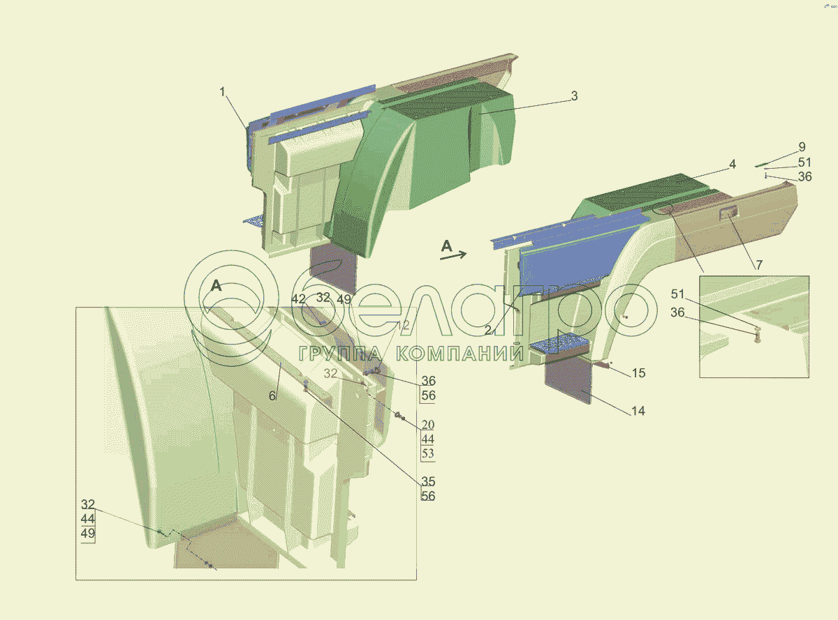 Каталог запасных частей к технике: МАЗ-5440E9. Установка оперения 6431-8400020-010