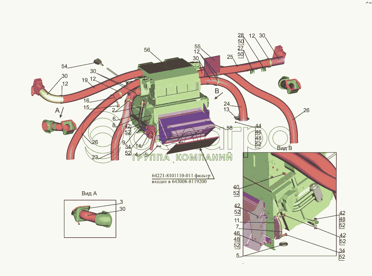 Каталог запасных частей к технике: МАЗ-5440E9. Установка отопителя 643008-8100001