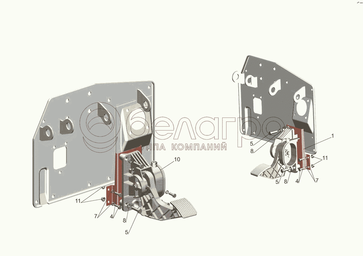 Каталог запасных частей к технике: МАЗ-5440E9. Установка педали управления двигателем 544019-1108002-010