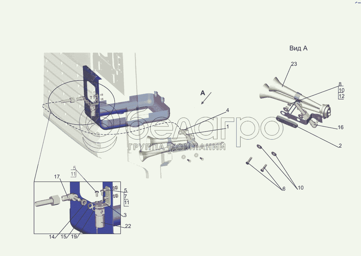 Каталог запасных частей к технике: МАЗ-5440E9. Установка пневмосигнала 6430-3700096
