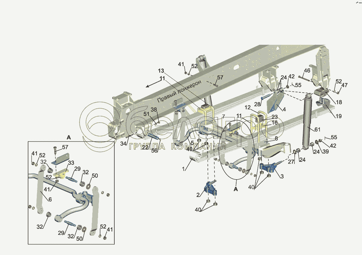 Каталог запасных частей к технике: МАЗ-5440E9. Установка подвески передней 544018-2900001-030