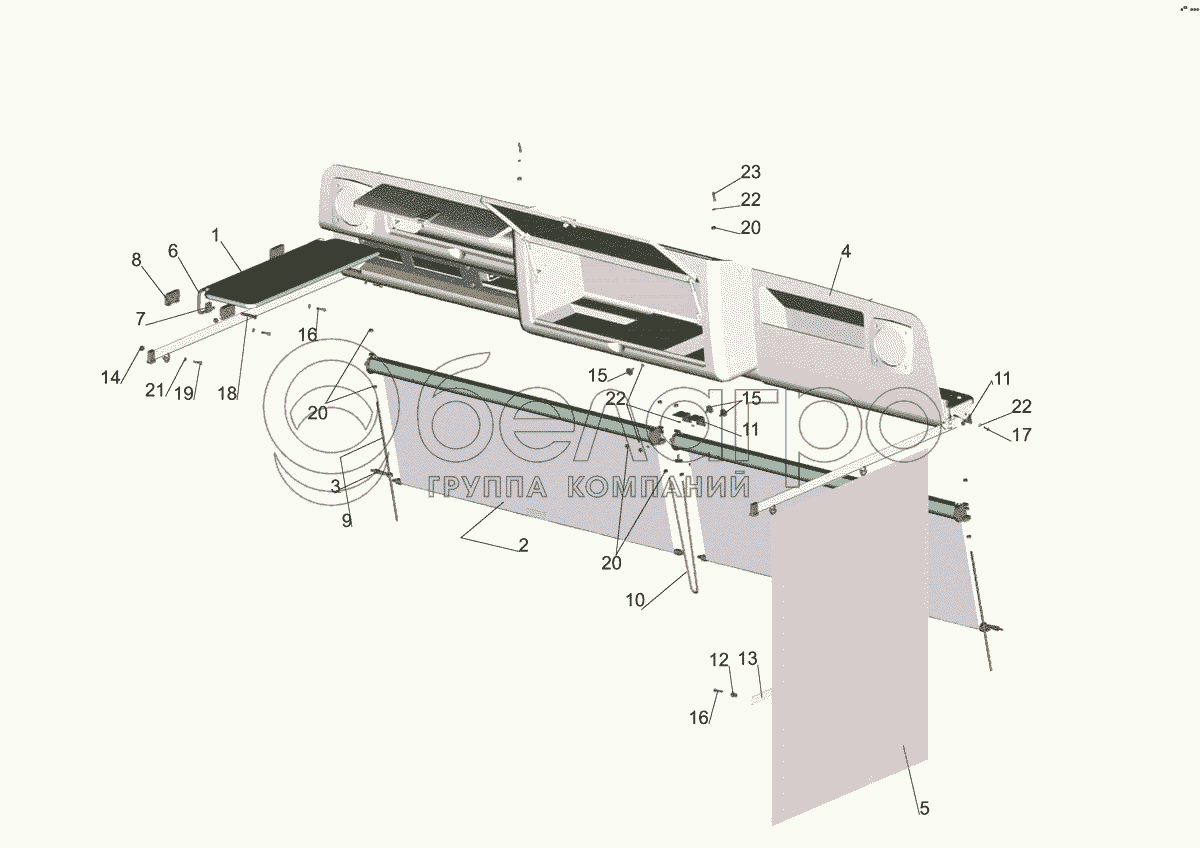 Каталог запасных частей к технике: МАЗ-5440E9. Установка полки, штор, козырька 6430-8200034