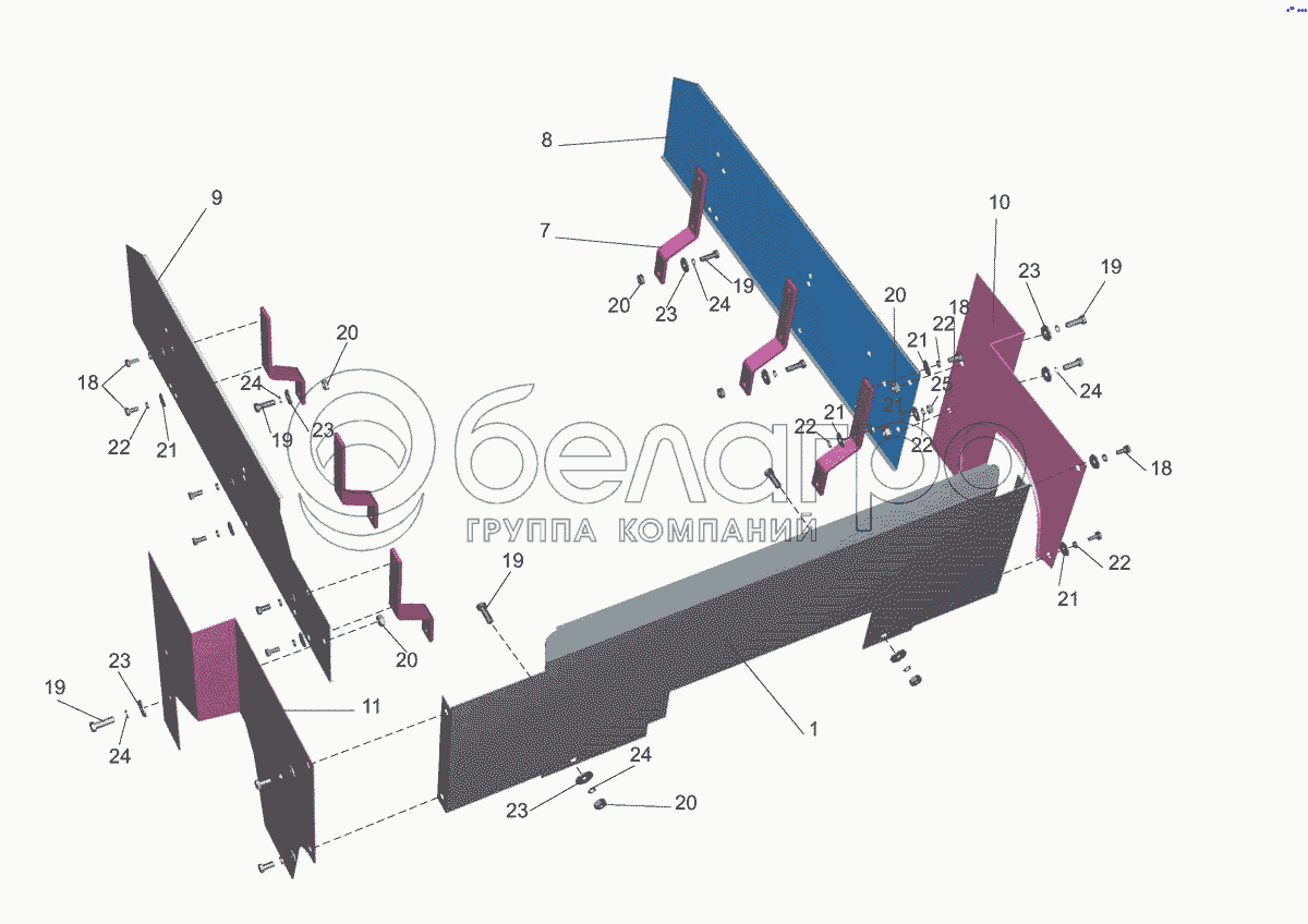 Каталог запасных частей к технике: МАЗ-5440E9. Установка шумоизоляционных экранов 544019-1061002-006