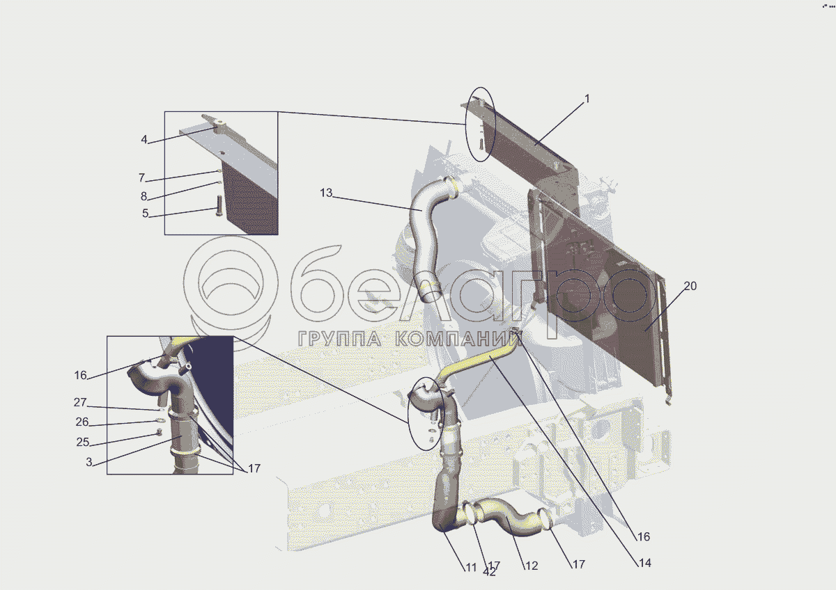 Каталог запасных частей к технике: МАЗ-5440E9. Установка системы охлаждения 544019-1300005