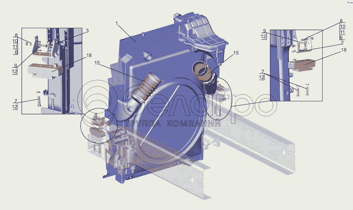Каталог запасных частей к технике: МАЗ-5440E9. Установка системы охлаждения наддувочного воздуха 544019-1300040