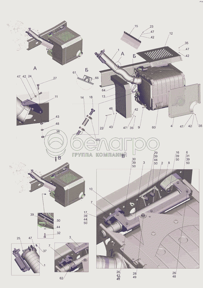 Каталог запасных частей к технике: МАЗ-5440E9. Установка системы выпуска газов 5440Е9-1200001