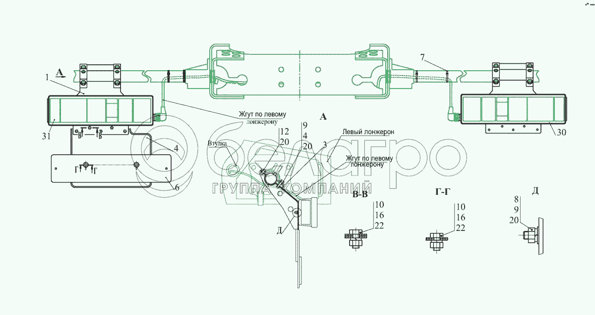 Каталог запасных частей к технике: МАЗ-5440E9. Установка задних фонарей 544019-3700009