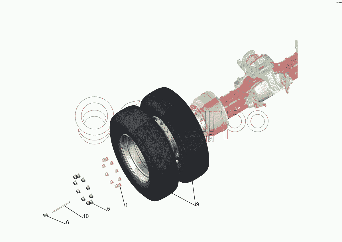 Каталог запасных частей к технике: МАЗ-5440E9. Установка задних колес
