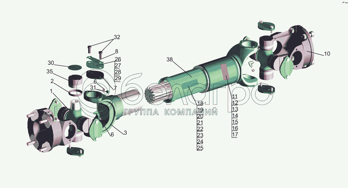 Каталог запасных частей к технике: МАЗ-5440E9. Вал карданный 5309-2201010