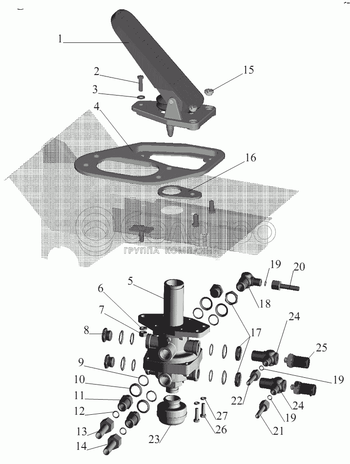 Каталог запасных частей к технике: МАЗ-551605. Крепление тормозного крана 64221-3514004-20