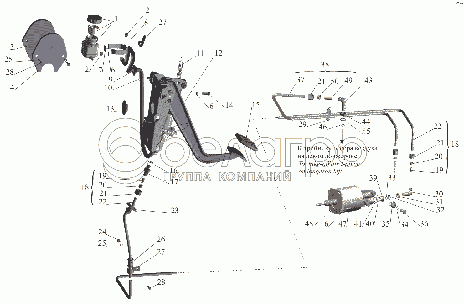 Каталог запасных частей к технике: МАЗ-551605. Механизм управления сцеплением 64229-1600005-050