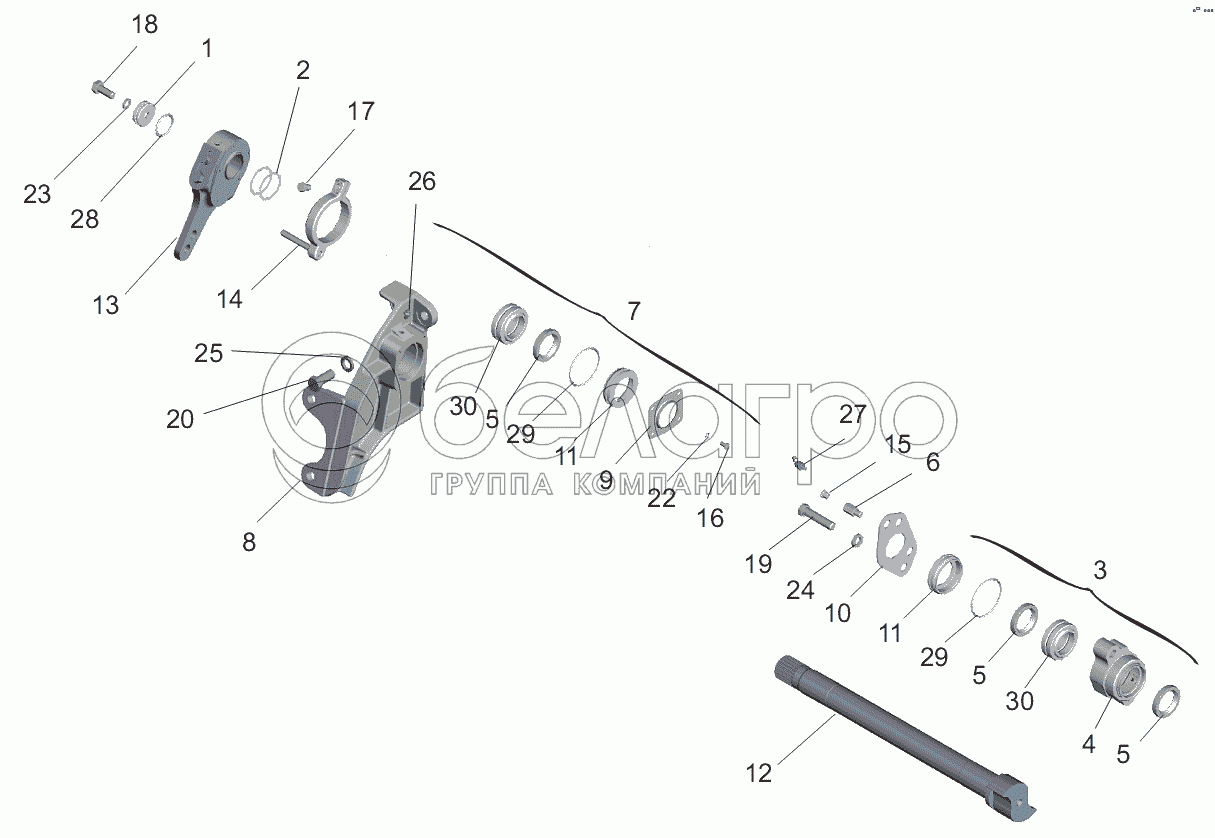 Каталог запасных частей к технике: МАЗ-551605. Привод тормозного механизма среднего моста