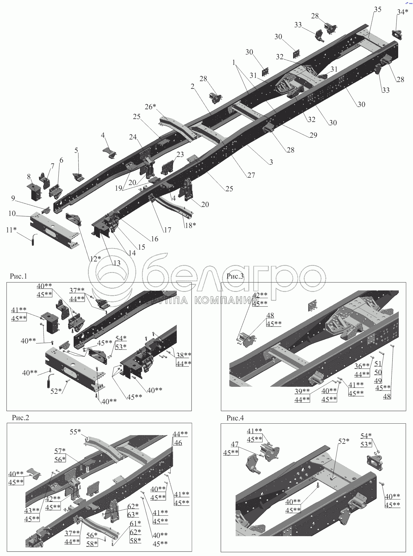 Каталог запасных частей к технике: МАЗ-551605. Рамы 551605-2800010-024, 551605-2800010-017